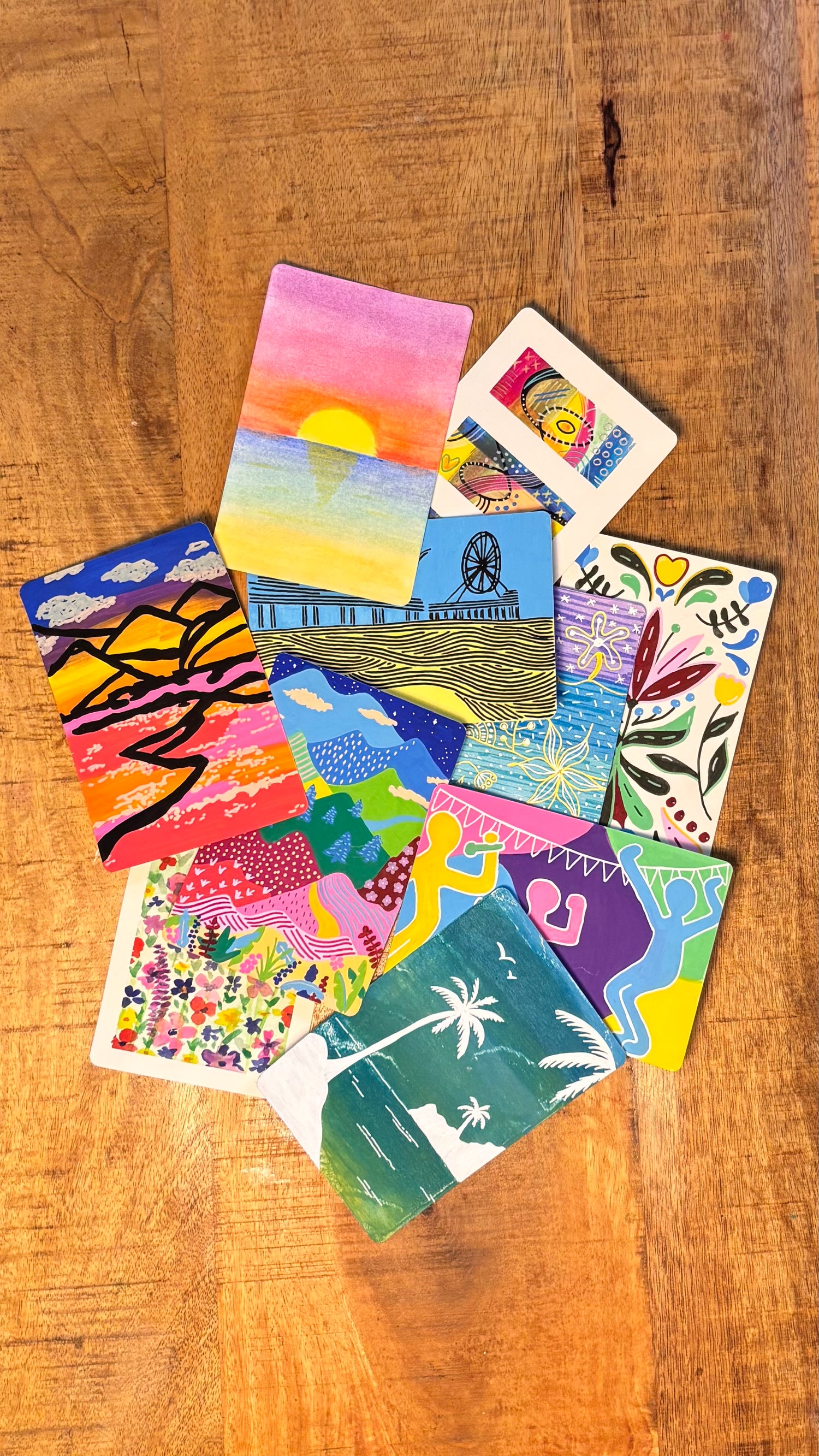2 postcard sized artworks, a little note from me to you, delivered right on your doormat.